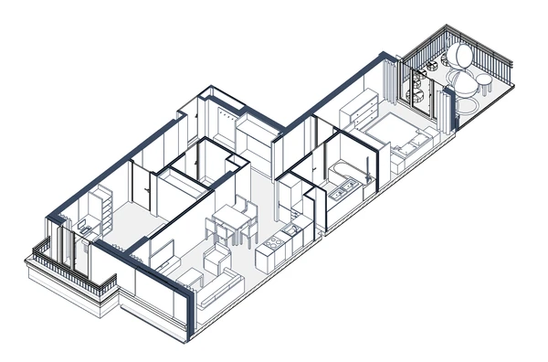 Мы сдаём квартиру с предчистовой отделкой. Это наиболее удобный для покупателей формат. Все грязные, пыльные, шумные работы мы уже выполнили: залили стяжку с шумо- и гидроизоляцией, выстроили ровные межкомнатные стены, развели электрику и слаботочку.