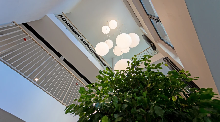 Лаконичное трёхэтажное здание площадью 3,5 тыс кв. метров развивает визуальную идею «Первого квартала» — простые и понятные формы, акцент на природные материалы и естественный свет, внимание к деталям. Стержень сада — многоуровневый атриум с зенитным фонарём на крыше.